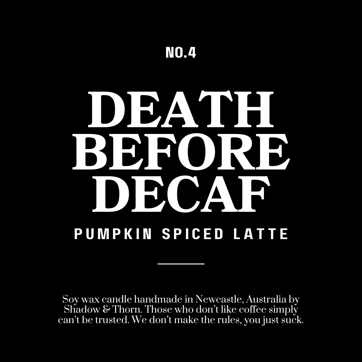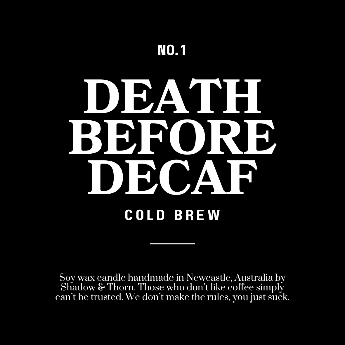We LOVE coffee is an understatement. Inspired by one of our absolute favourite Cafe’s our Death Before Decaf range is one to make your mouth water! Unlike an actual coffee, these fragrances won’t keep you up at night but they will have your space smelling like the freshest brew of your choice!
