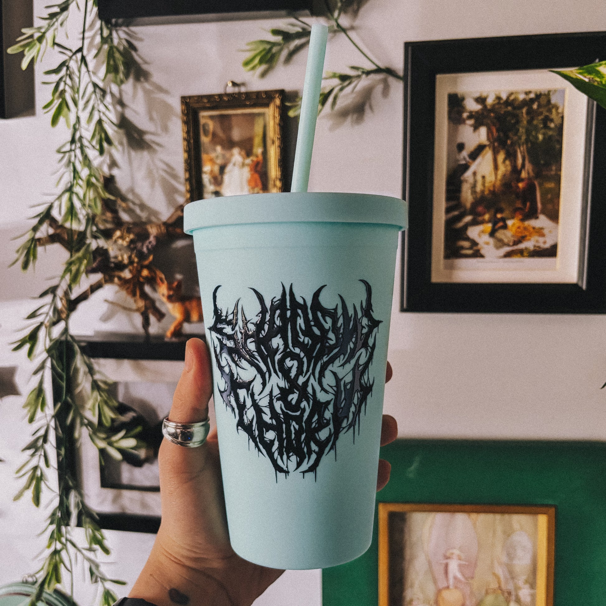 500ml (17oz) double walled BPA free plastic tumbler with straw